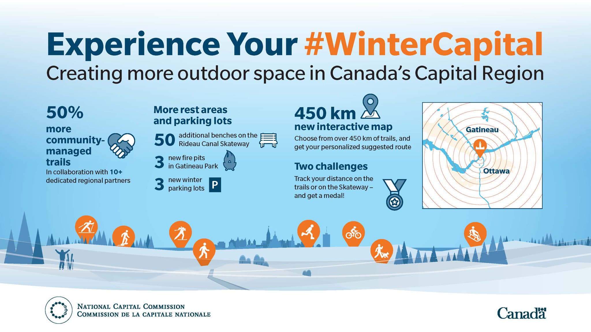 The national capital region is an official designation comprising canada's capital ottawa, in ontario, the neighbouring city of gatineau, in quebec, and surrounding urban and rural communities.